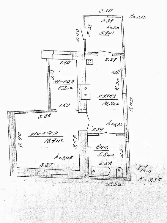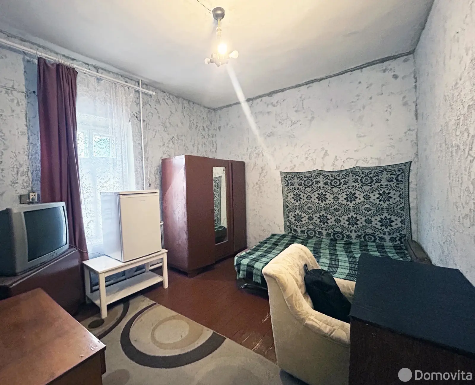 Квартира с отдельным входом в блокированном двухквартирном доме. В жилом состоянии, под ремонт. Двойные деревянные окна, дощатые полы, стены оштукатурены. Сохранена печь. Отопление, водоснабжение, канализация - центральные. Квартира состоит из дощатых сеней, кухни, совмещенного санузла и двух комнат, одна из которых проходная. Высокие потолки – 3,35 м.