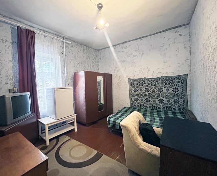 Квартира с отдельным входом в блокированном двухквартирном доме. В жилом состоянии, под ремонт. Двойные деревянные окна, дощатые полы, стены оштукатурены. Сохранена печь. Отопление, водоснабжение, канализация - центральные. Квартира состоит из дощатых сеней, кухни, совмещенного санузла и двух комнат, одна из которых проходная. Высокие потолки – 3,35 м.