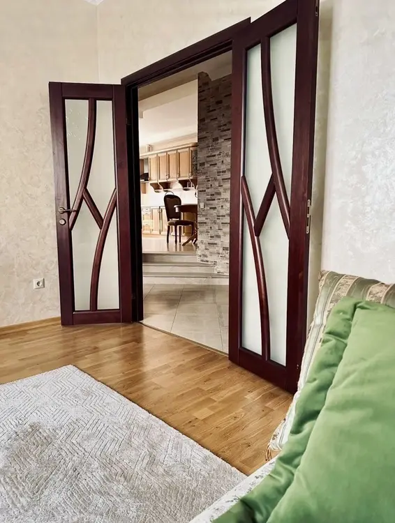 3 этаж 8-миэтажного дома 2016 года постройки, материал стен – блок. Общая площадь 65.1 кв.м., жилая 29,5 кв.м., кухня 14.1 кв.м. Квартира нестандартной планировки при этом очень удобной, ремонт в классическом всегда актуальном стиле, потолки 3м, на кухне теплый пол. Кухня «ЗОВ» 6м.п. из массива с встроенной техникой BOSH, мебель в комнатах и прихожей из массива от «Пинскдрев» серии «Алези», раскладной диван «Пинскдрев». Окна – ПВХ. Сан. узел раздельный, облицован плиткой. Материал полов – паркет, керамогранит.