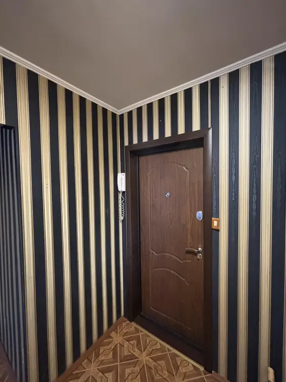 В квартире сделан косметический ремонт: установлены деревянные окна, пол в комнатах, коридоре и на кухне- линолеум, в санузле- плитка, в комнатах поклеены обои, потолки по всей квартире побелены. На кухне установлен кухонный гарнитур. В квартире есть просторный, застекленный балкон. Входная дверь в квартиру металическая. Межкомнатные двери- деревянные.