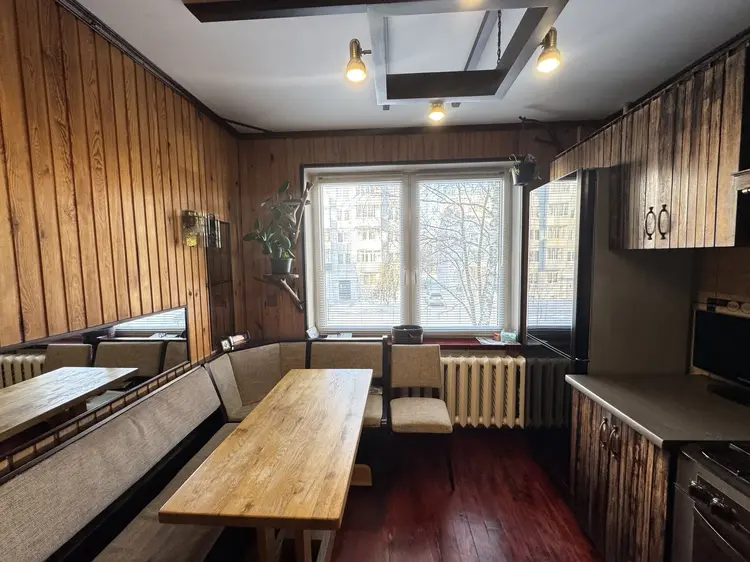 Санузел раздельный, материал стен-вагонка, ванная комната облицована плиткой, заменен полотенцесушитель, установлена акриловая ванна. Кухонный гарнитур из МДФ оббит дубовой доской.