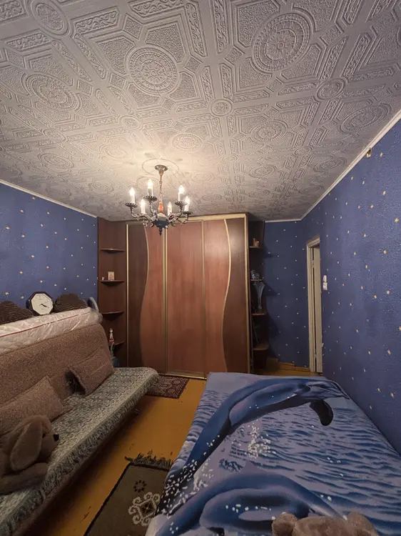 В спальне установлен вместительный шкаф-купе. Входная дверь в квартиру металлическая. Окна выходят во двор.