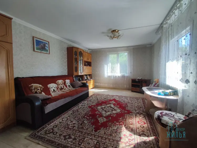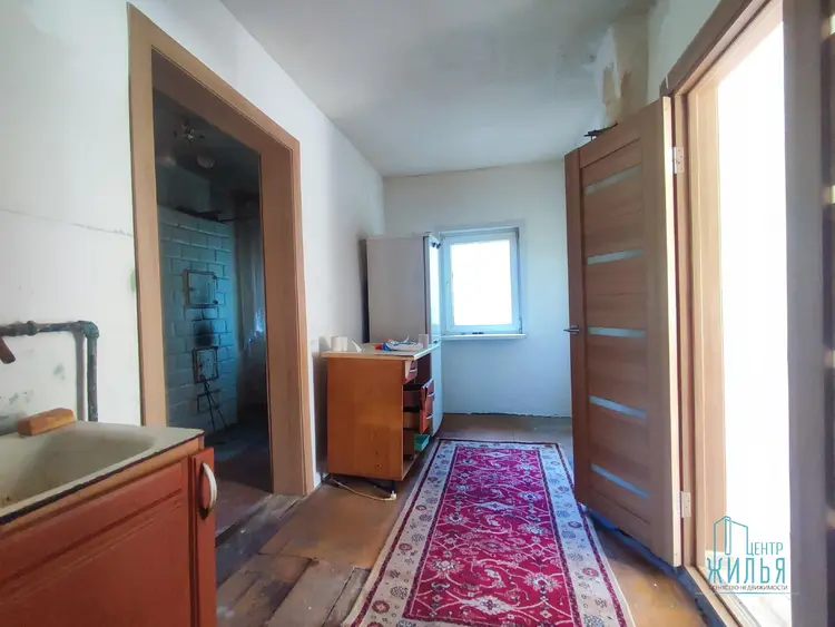 Дом одноэтажный бревенчатый, перекрытия деревянные, крыша – шифер. Установлены стеклопакеты, пол – ламинат, ДСП. Есть погреб. Отопление печное (две печки). Общая площадь квартиры 46 м.кв., состоит из двух комнат, кухни, коридора. Коммуникации центральные: электричество разведено по дому, вода холодная введена в дом, газ – по участку, канализация – по улице. Земельный участок 5 соток огорожен со всех сторон. Вход отдельный от соседей.