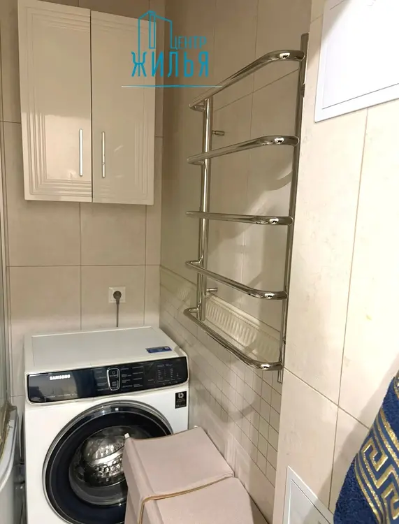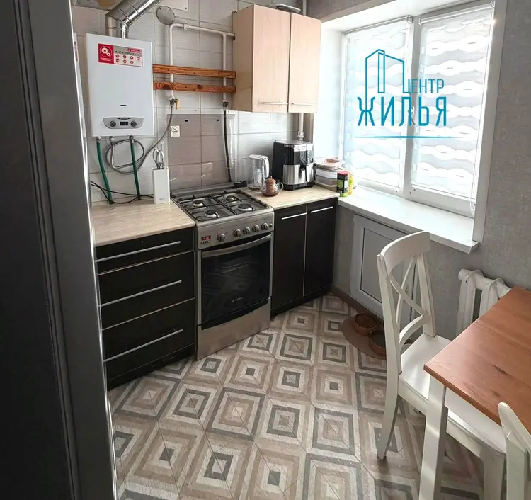 В квартире выполнен косметический ремонт. Напольное покрытие в комнатах – ламинат, в кухне и прихожей – линолеум. Санузел – в керамической плитке, проведены новые трубы в ванной, гидроизоляция по всему периметру до потолка. Обои на стенах, потолки окрашены. Кухонный гарнитур с плитой и холодильником. Установлена газовая колонка для нагрева воды.