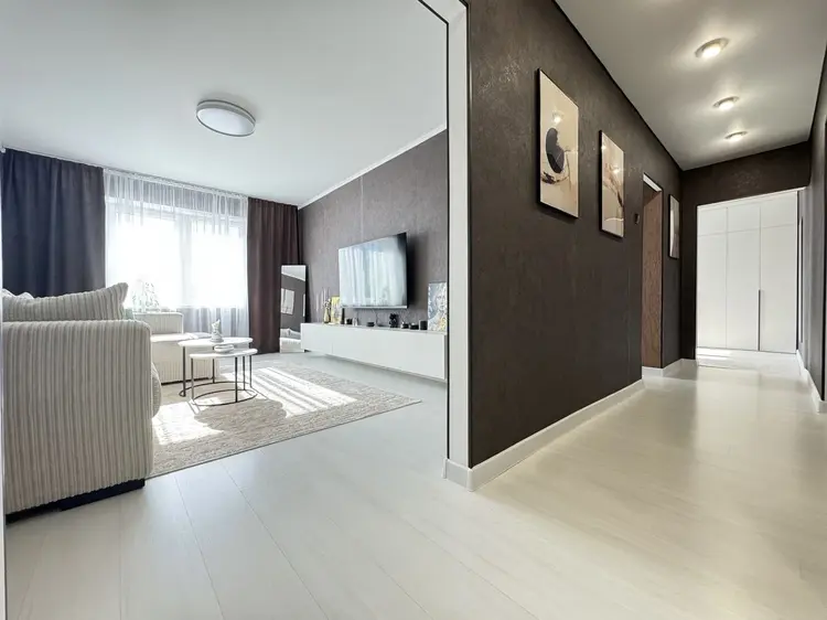 8 этаж 9-тиэтажного дома 1983 года постройки, материал стен – панель. Функциональная планировка, общая площадь 58.1 кв.м., жилая 32.9 кв.м., кухня 8.2кв.м. Окна – ПВХ. Сан. узел раздельный, облицован плиткой. Материал полов – ламинат, плитка.