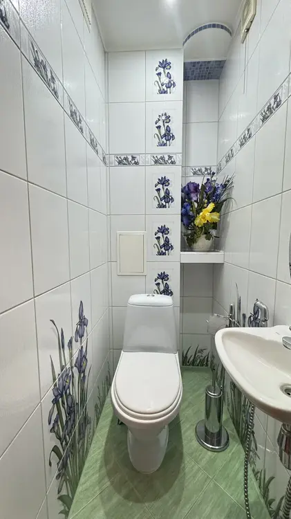 Санузел раздельный, установлен умывальник и гигиенический душ. С/у и ванная комната облицованы плиткой, где произведена полная заменена сантехники!