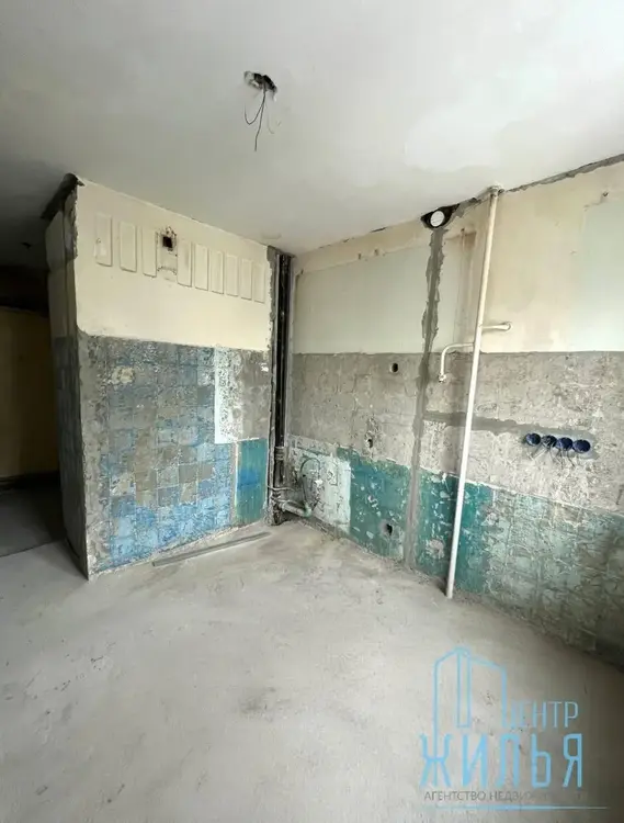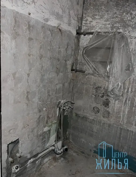 Квартира под ремонт. Выполнен полный демонтаж (плитка, стены, двери, окна, антресоли), залита стяжка, выровнен потолок, оштукатурены стены. Также по всей квартире разведена электрика, заменена сантехника и установлен новый полотенцесушитель.