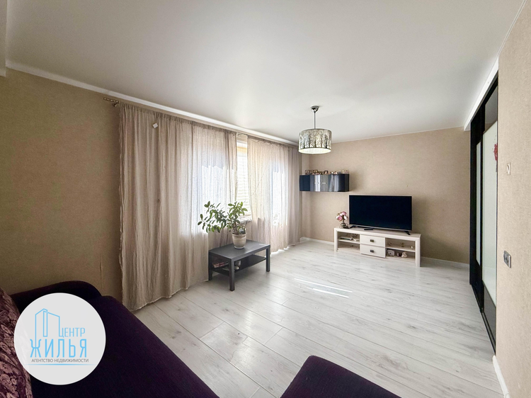 В квартире хороший жилой ремонт. Во всей квартире стоят стеклопакеты, застекленная лоджия. Металлическая входная дверь. Общая площадь квартиры составляет 57,0 кв.м., в т.ч: гостиная – 19,3 кв.м., спальня – 13,7 кв.м. и кухня – 7,9 кв.м. На лестничной площадке есть кладовая.