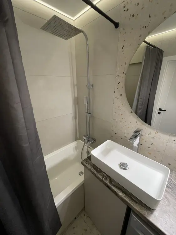 7 этаж/10 этажного панельного жилого дома. Год постройки 2022. Площадь общая 55.8, жилая 25.9,кухня 8.4 м2 совмещена с залом и лоджией(выполнены теплые полы). Одна панорамная лоджия 3.9 м2. Санузел раздельный. Уложен качественный ламинат,стены оклеены обоями натяжные потолки с теневым профилем.