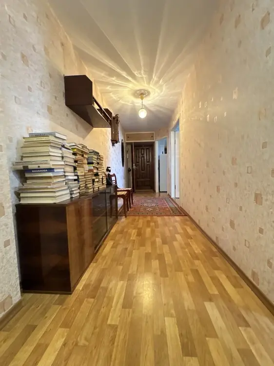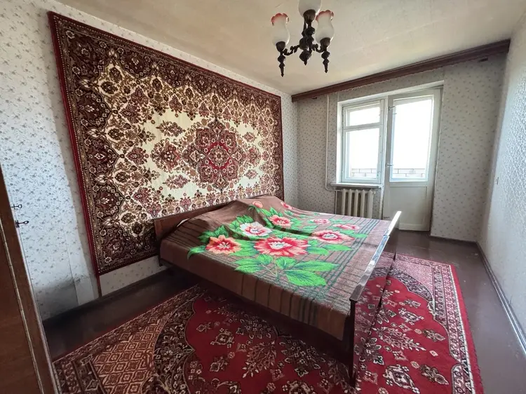 Входная дверь-двойная деревянная, полы - линолеум, дсп. Кухня (8 м2) укомплектована кухонным гарнитуром, газовой плитой и холодильником, имеется выход на просторную лоджию, где можно любоваться прекрасными восходами солнца.