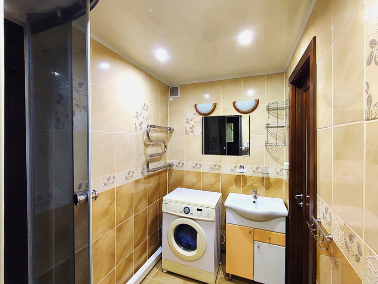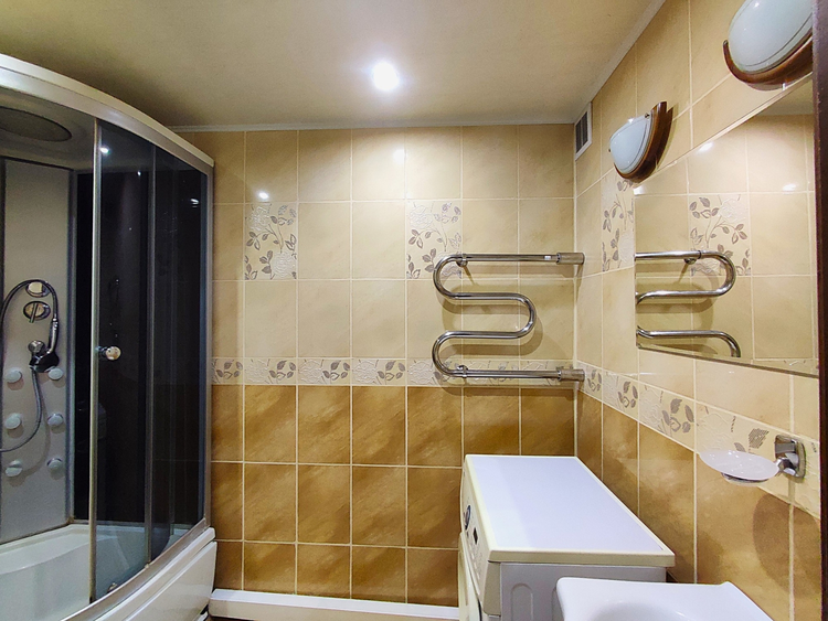Ванная комната расширена за счёт кладовки 4,0 м2 и оснащена душевой кабиной. Перепланировка узаконена.
