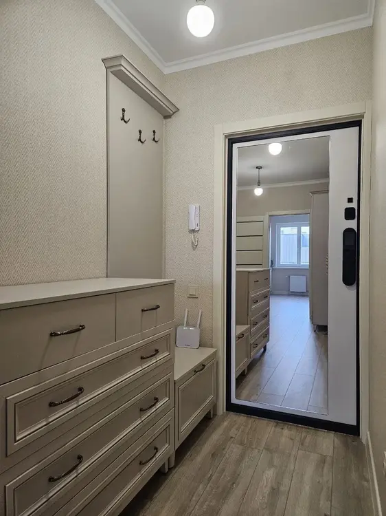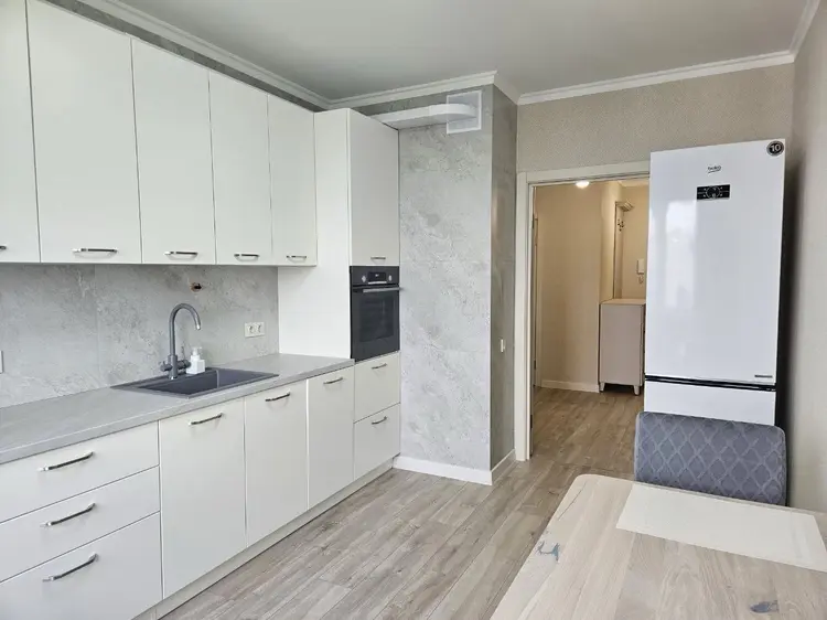 Выполнен дизайнерский ремонт с применением натуральных дорогостоящих материалов. Умная входная дверь с электронным замком! В зале панорамное окно в пол с видом на лес! Полностью укомплектована мебелью с массива и бытовой техникой фирмы Bosch!