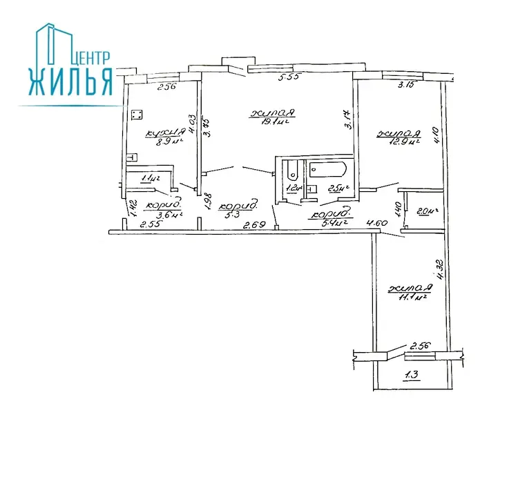 Площадь – 73,1/43,1/8,9 м2.