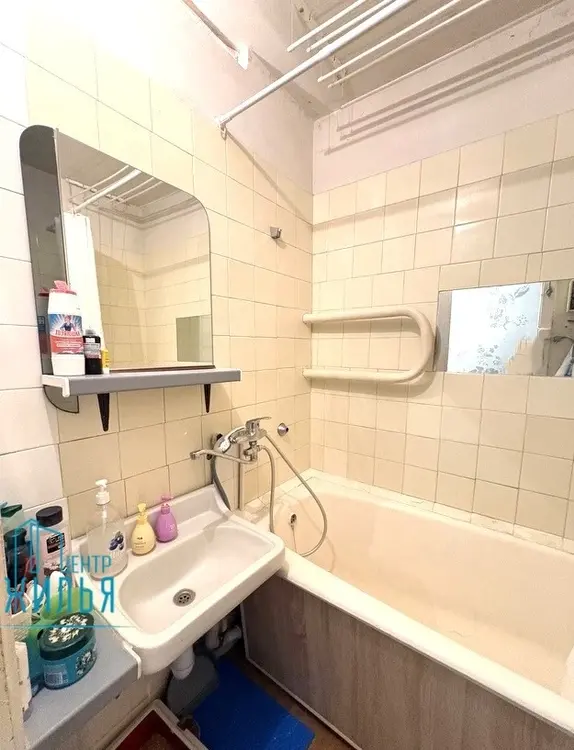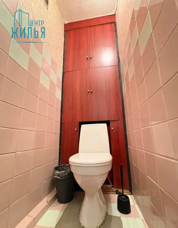 Установлен кухонный гарнитур, командор в комнате. В ванной и туалете – керамическая плитка советского образца.