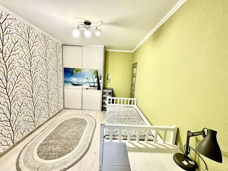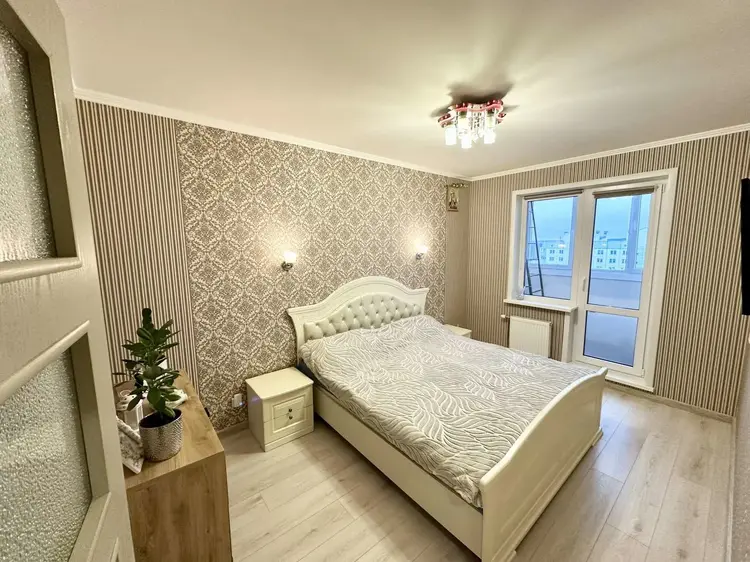 8 этаж 9-ти этажного панельного дома 2017 года постройки. Общая площадь 80 кв.м., жилая – 44.5 кв.м., кухня 11.8. Окна – ПВХ. Сан. узел раздельный, облицован плиткой, установлена стиральная и сушильная машина. Материал полов – ламинат, плитка, материал стен – обои. Квартира продается со встроенной мебелью и техникой.