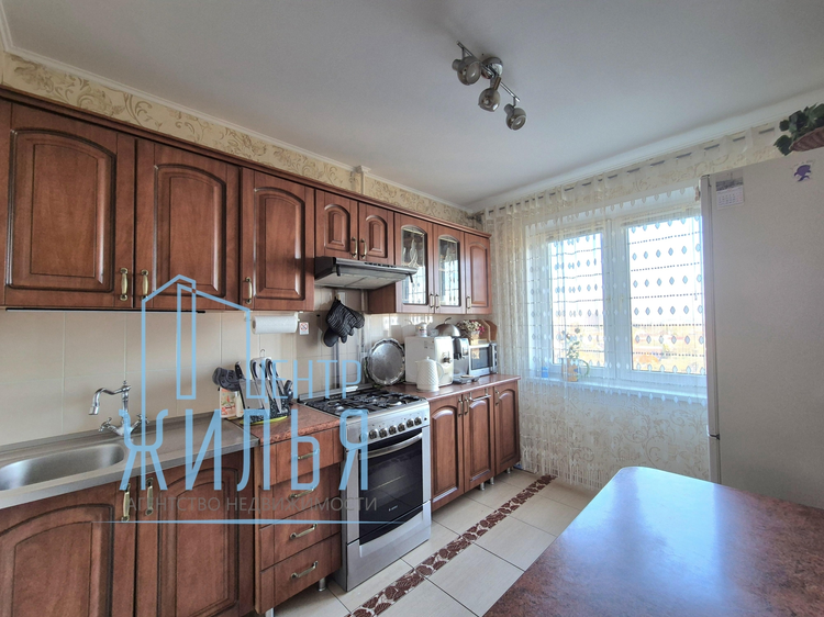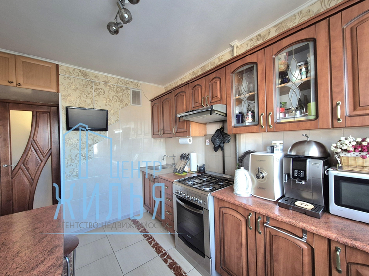 Квартира светлая, теплая и очень уютная. Окна квартиры выходят на две стороны с красивым видом на город. Во всей квартире уложен линолеум. В кухне и коридоре на полу плитка. Стены выровнены и оштукатурены, поклеены обои. Потолки выровнены и покрашены. В кухне установлен современный кухонный гарнитур. Ванная комната облицована плиткой. На стенах в туалете — обои.