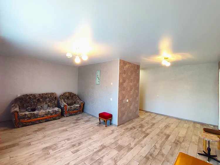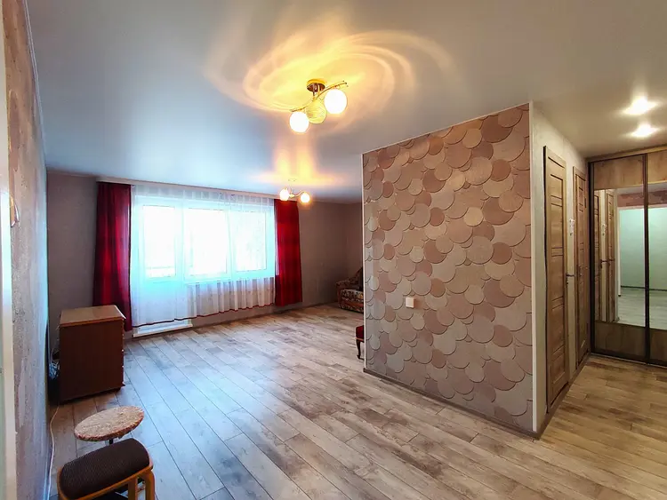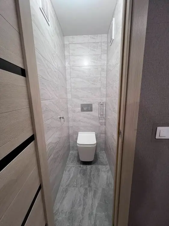 В квартире произведён полный демонтаж штукатурки, полов, батарей, сантехники, электрики, сделан современный ремонт.