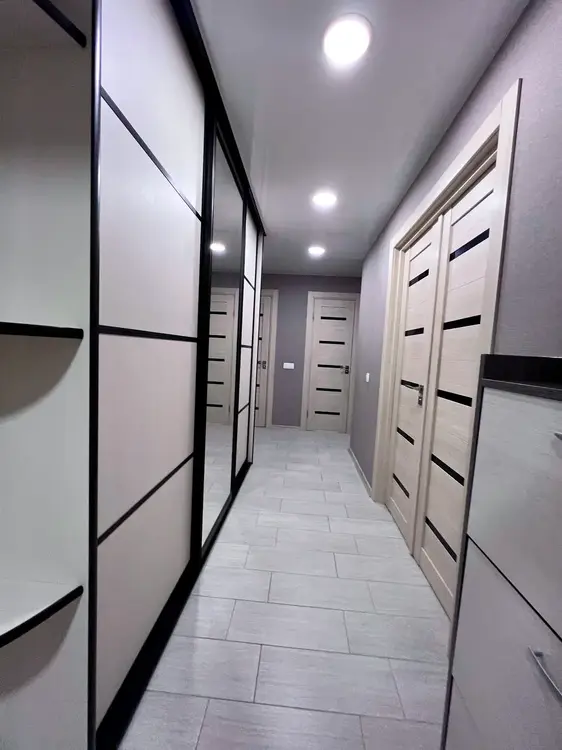 10) В коридоре установлен встроенный просторный шкаф, пол - плитка