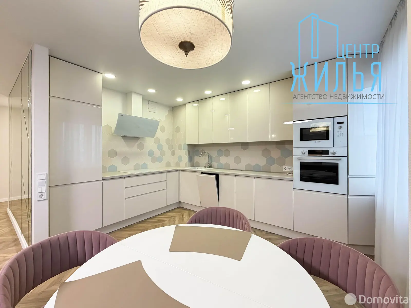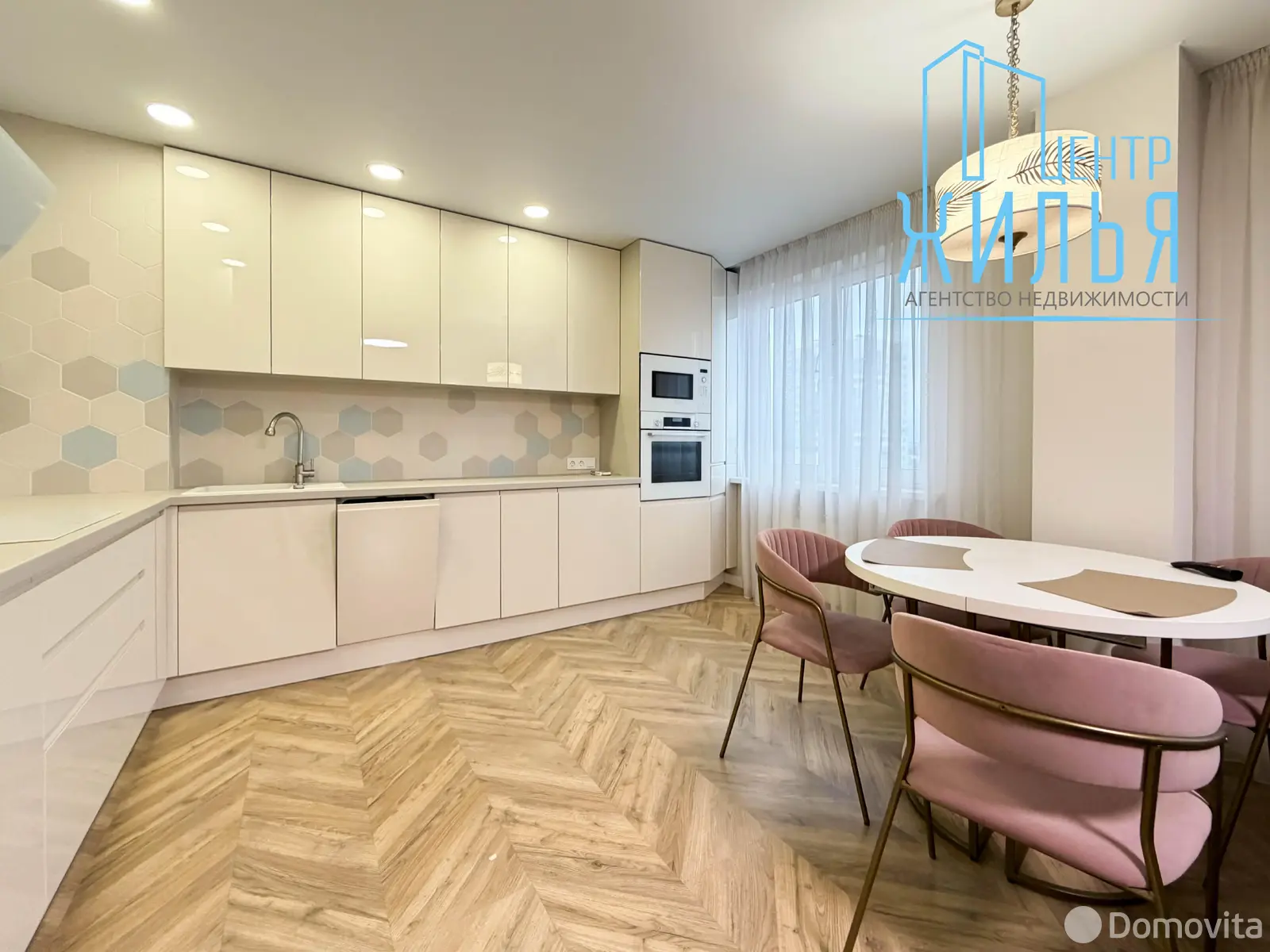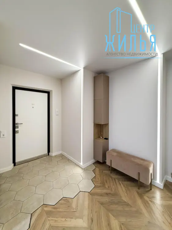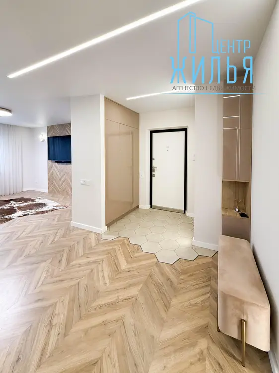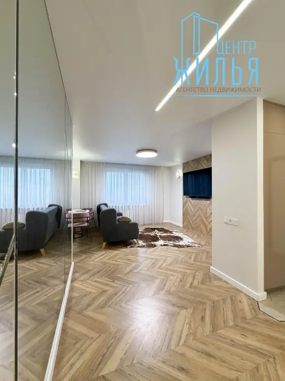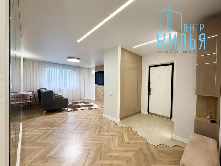 Во всех комнатах – стеклопакеты ПВХ, стены – обои/ декоративная штукатурка, пол – ламинат/ плитка, потолок – натяжной с продуманными зонами освещения, сан.узел (раздельный) – плитка, входная металлическая дверь с повышенным уровнем звукоизоляции. Есть вместительная гардеробная (кладовая).