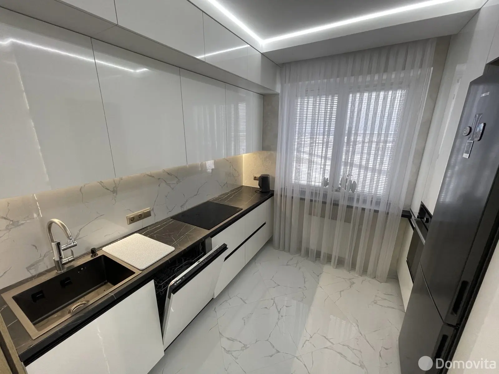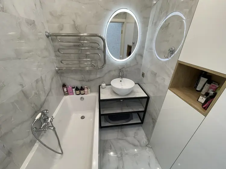 Выполнен дизайнерский ремонт с применением натуральных дорогостоящих материалов. В комплекте кухня со встроенной бытовой техникой !