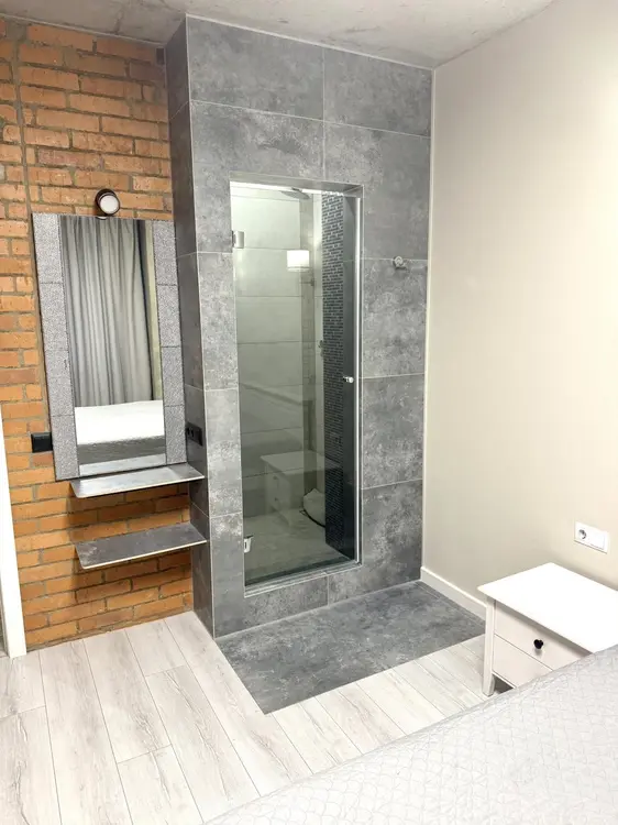 В спальне оборудована собственная душевая кабина, есть отдельная гардеробная с продуманной системой хранения. Санузел и ванная комната облицованы качественной плиткой, установлена современная сантехника и вместительная стиральная машина. Входная дверь оборудована электронным замком ― безопасность на высшем уровне.