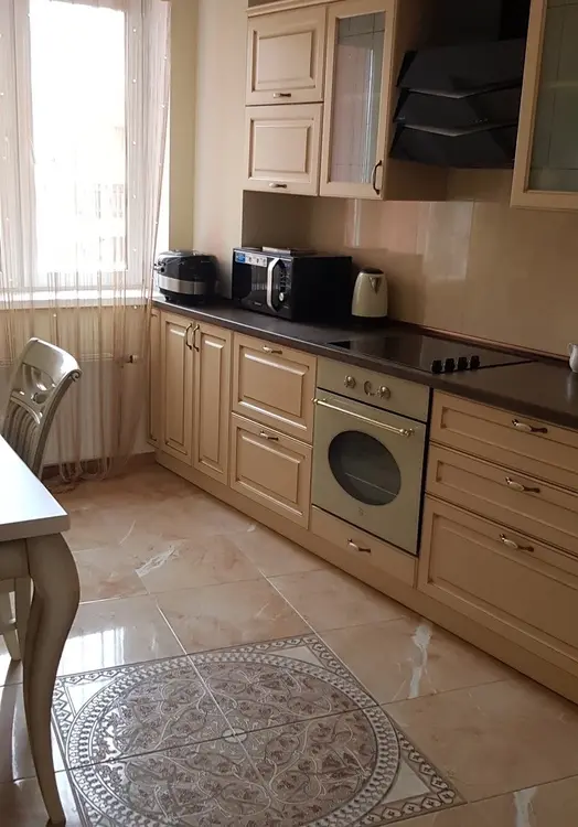 Дорогой дизайнерский ремонт в современных тонах. Ремонт делали для себя, использовали только высококачественные материалы. Материалы покупали самые дорогие, импортные. В квартире остается дорогая встроенная кухня с бытовой техникой, встроенные шкафы в спальне и на лоджии.