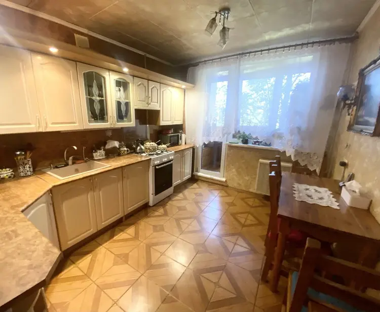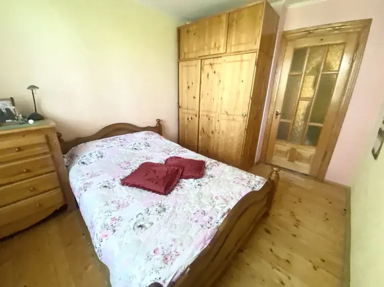 Пол в квартире – натуральное дерево, в кухне - плитка. Потолки в комнатах – окрашены “жидкие обои”, в кухне - кассетоны. Стены в комнатах – окрашены “жидкие обои”, в коридоре и кухне – нанесена декоративная штукатурка. Раздельный, просторный санузел, оборудован дополнительным умывальником, облицован плиткой. Окна - стеклопакеты. Деревянная двойная входная дверь, межкомнатные деревянные двери в одном стиле.