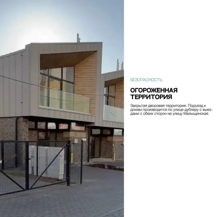 Закрытая территория с ландшафтным дизайном, идеально подходящая для отдыха на свежем воздухе. Каждый таунхаус имеет собственный участок 0,2 сотки.