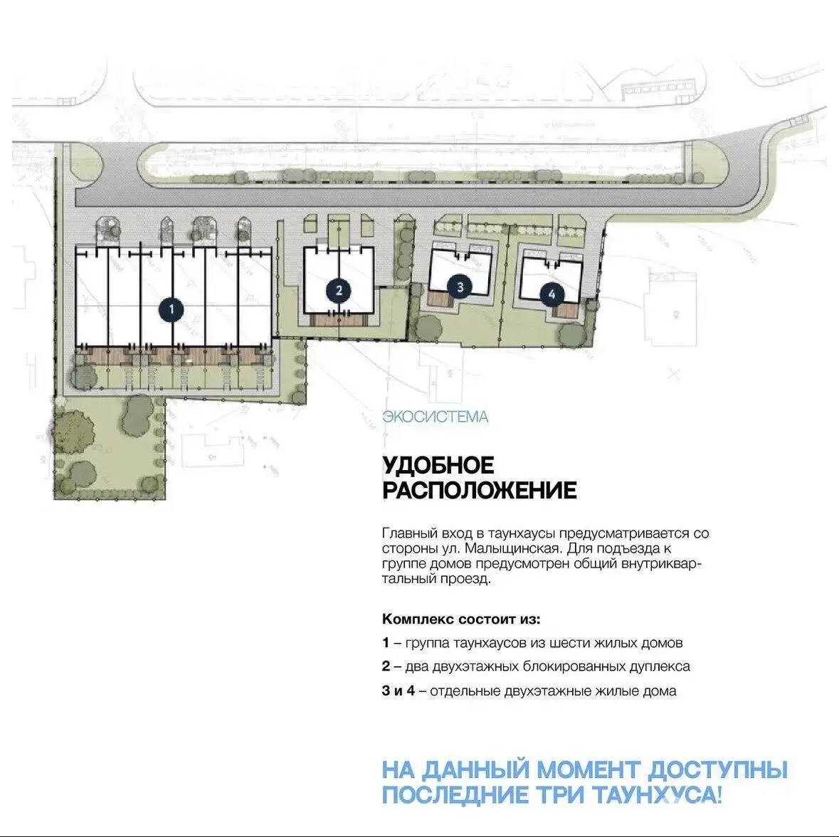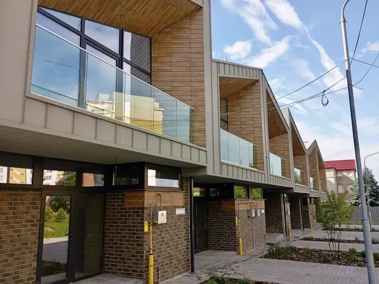 Закрытая территория с ландшафтным дизайном, идеально подходящая для отдыха на свежем воздухе. Каждый таунхаус имеет собственный участок 0,2 сотки.
