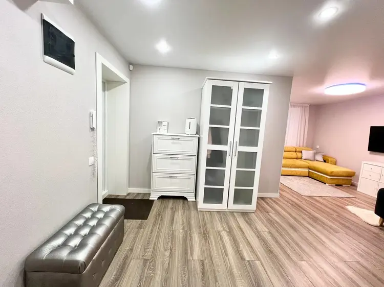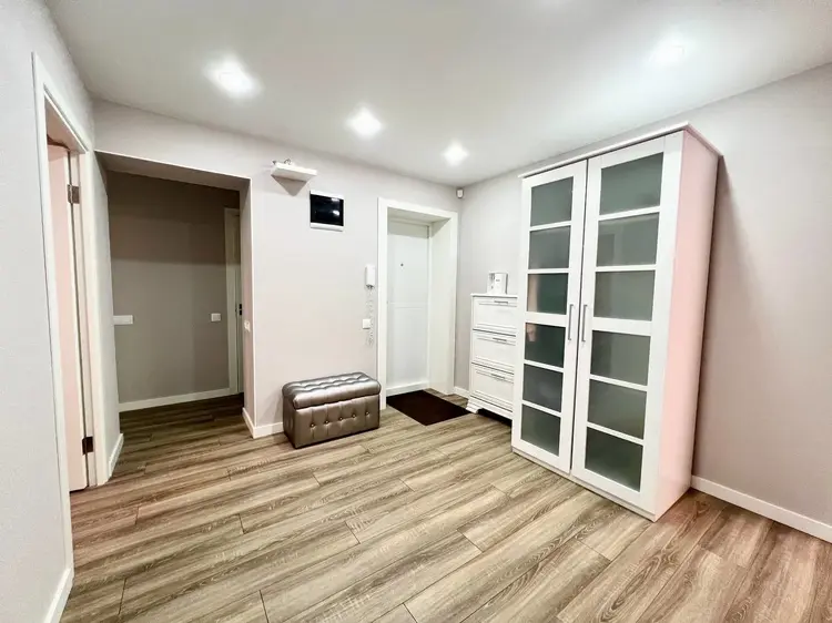 Во всей квартире на полу уложен кварц-винил одним полотном без порогов, натяжные потолки, стены окрашены, так же полностью заменена сантехника и электрика (много точек освещения и проходные выключатели), в санузле установлен проточный водонагреватель на случай отключения горячей воды.