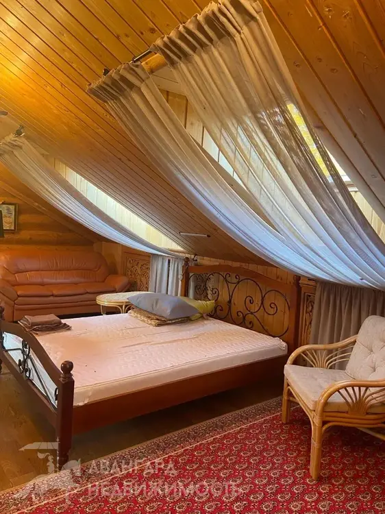 Площадь дома – 168 м.кв. Сруб изготовлен из оцилиндрованного вручную бревна диаметром 380 мм., одноэтажный, с мансардой и балконом, с изумительным видом на