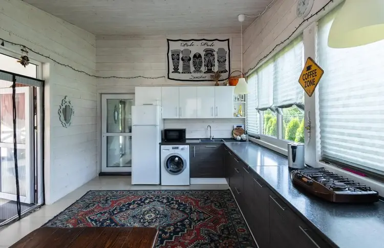 · Просторная кухня (17,8 м2) с керамогранитом и светлыми стенами, со встроенной мебелью, посудомоечной машиной, кухонная плита газ/электричество.
