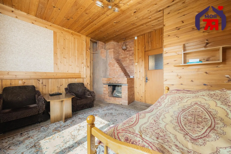 Просторный дом с баней в Сосновке Просторный дом 1998 года на участке 25 соток с баней, скважиной, бойлером, печным отоплением и возможностью дополнительно взять в аренду ещё 75 соток — отличный вариант для жизни, дачи или хозяйства. Адрес: х. Сосновка - Продаётся дом 1998 года постройки площадью 123,4 м², готовый к проживанию. В доме 4 комнаты, просторная кухня 15,3 м², жилая площадь составляет 42,2 м². Планировка дома удобная и позволяет использовать дом как для постоянной жизни, так и для отдыха за городом. - В жилых комнатах отделка отличается: одна из комнат оформлена в классическом стиле с мягкой мебелью, большой стенкой и кирпичным камином, другие комнаты обшиты деревом, что создаёт особенно тёплую и уютную атмосферу. Кухня просторная, светлая, с двумя окнами, местом для большого обеденного стола, мойкой и печью, которая поддерживает указанное в карточке печное отопление. - Санузел организован отдельно, установлен бойлер, что обеспечивает наличие горячей воды. Также есть умывальная зона и баня, что является большим плюсом для загородного дома. В дом заведено электричество, водоснабжение — от скважины, канализация местная. - Дом расположен в Минской области, Пуховичском районе, в населённом пункте Сосновка, в 35 км от МКАД по Слуцкому направлению. Участок составляет 25 соток, при этом дополнительно есть возможность взять в аренду ещё около 75 соток рядом с домом — отличное решение для ведения хозяйства, отдыха, сада, огорода или расширения территории под личные нужды. - На участке расположен сам дом, баня, а также хозяйственные постройки и навес/место для автомобиля. Территория открытая, ровная, с большим запасом пространства для благоустройства, установки беседки, зоны барбекю, детской площадки или ландшафтного дизайна по вашему вкусу. - Отдельным преимуществом объекта является близость леса и водоёма, что делает это место особенно привлекательным для тех, кто ценит тишину, природу и свежий воздух. Источник Фото фасада Фото дома Этот дом подойдёт семье, которая хочет жить ближе к природе, любителям загородного отдыха, а также тем, кто ищет просторный объект с участком и хорошим потенциалом для развития. Здесь уже есть всё важное для комфортной жизни: крепкий дом, баня, коммуникации, большая территория и уютная атмосфера настоящего загородного дома. Это тот вариант, который можно выбрать и для спокойной жизни, и для отдыха душой вдали от городской суеты. Ищете выгодную недвижимость или хотите продать свою? Мы решим это для Вас с заботой и профессионализмом: - Купить квартиру или дом в Минске и области - Продать недвижимость по выгодной цене - Оформить ипотеку, семейный капитал или кредит на покупку недвижимости - Помочь с инвестициями в недвижимость - Подобрать дизайнерский ремонт или перепланировку - Выбрать лучший банк для выгодного кредита и лизинга * Напишите нам в удобный мессенджер - Viber, Telegram или WhatsApp, и мы ответим на все вопросы! «Моя 7Я» решит это, как для своей семьи: с любовью, заботой и желаемым результатом! Агентство недвижимости ООО «Центр международной недвижимости Моя 7Я» | УНП 193750826 | Лицензия: № 02240/484 выдана МЮ РБ 18.05.2024 г. | Страховое свидетельство БР 0005017