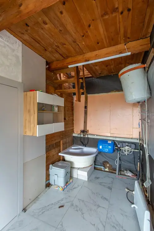 Подведено электричество, установлен бойлер на 50 литров для нагрева воды. Вода сезонная. Участок оборудован канализацией.