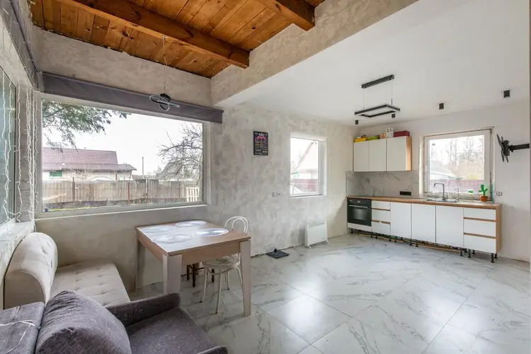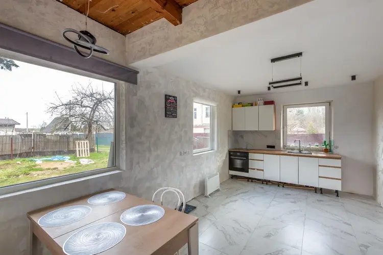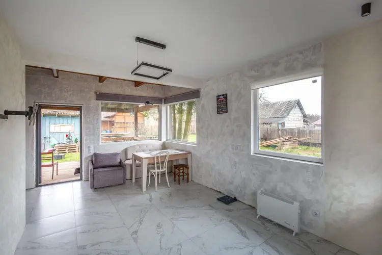 Дом дополнительно обшит гипсокартоном, что обеспечивает комфортную температуру в любое время года. Установлены стеклопакеты и надёжная металлическая входная дверь — в доме тепло, тихо и безопасно. Продуманная планировка позволяет удобно организовать пространство для всей семьи.