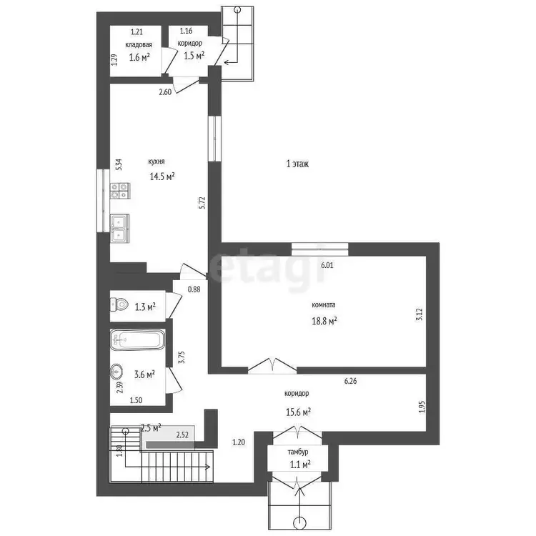 Два отдельных входа, 4 комнаты, 2 туалета, ванная комната, просторная кухня, лоджия, кладовки и огромный подвал. Также есть возможность приспособить крышу 1-го этажа под место для отдыха.