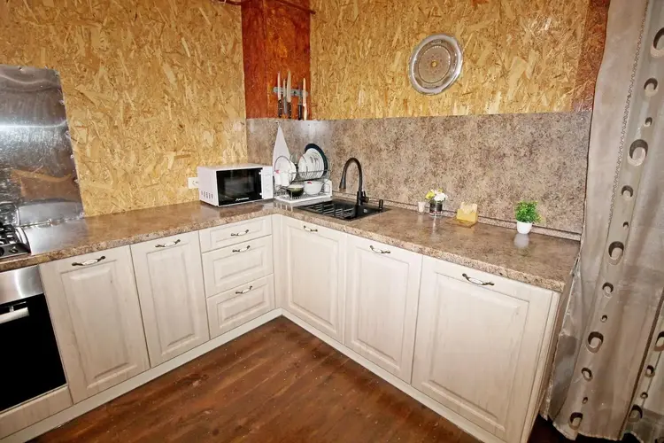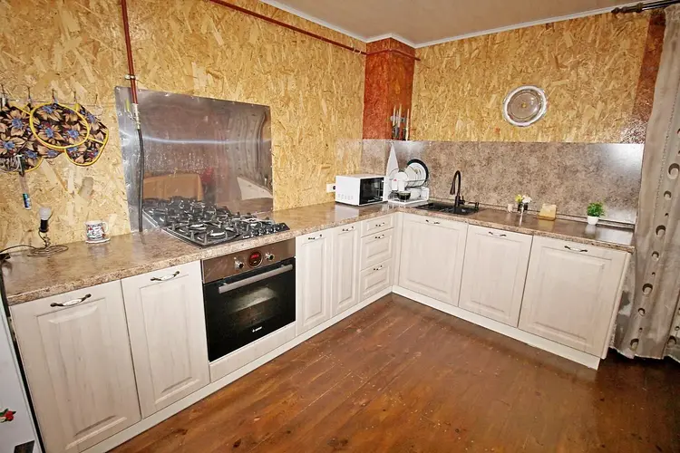 Дом состоит из: двух спален, просторной кухни-гостиной, с/у, коридора и прихожей (топочной). Имеются хозпостройки, подвал в доме и садовые насаждения (яблони, груши, черешня, вишня, грецкий орех).