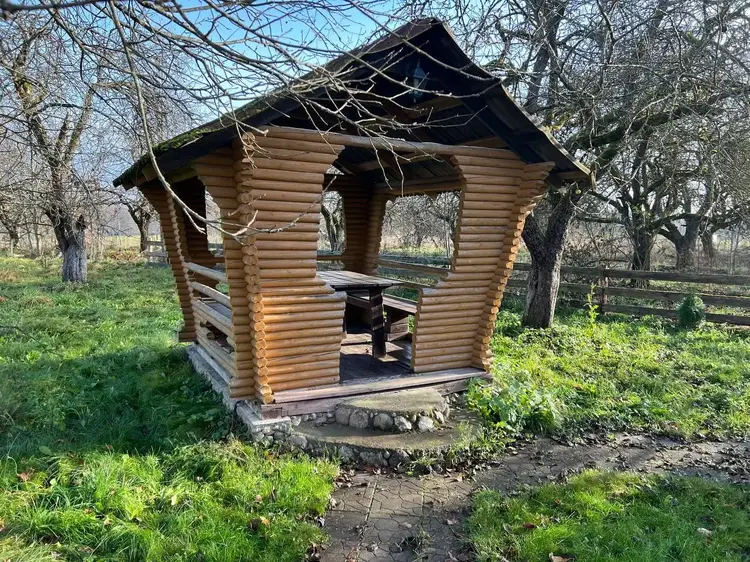 На придомовой территории расположены две вместительные беседки, погреб, 2 крытых мангала, качели. Территория участка (13 сот.) разработана, также есть фруктовый сад. Усадьба огорожена. Дома между собой отделены декоративным забором. Имеются пирсы и места для купания взрослых и детей. Продается со всем имуществом и оборудованием. Может использоваться для постоянного места жительства, для сезонного отдыха владельца или под туристическую деятельность. Недалеко от территории усадьбы расположены богатые живностью, грибами и ягодами лесные угодья.