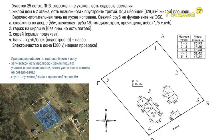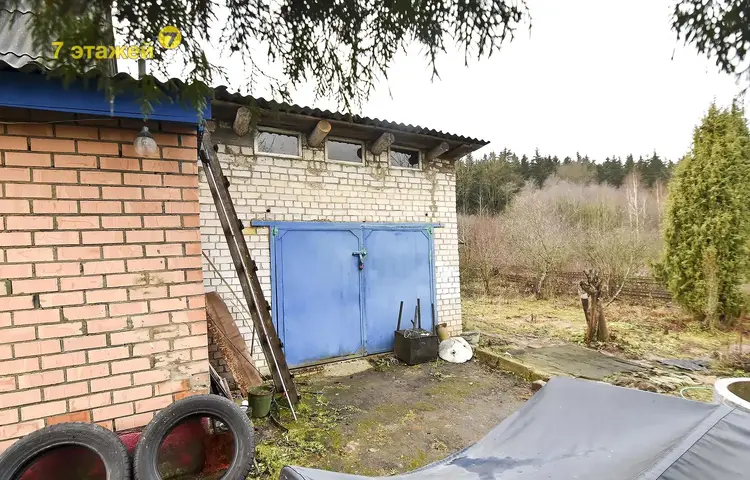 К дому примыкает гараж, без ямы, но с погребом, на участке есть баня (не достроена)