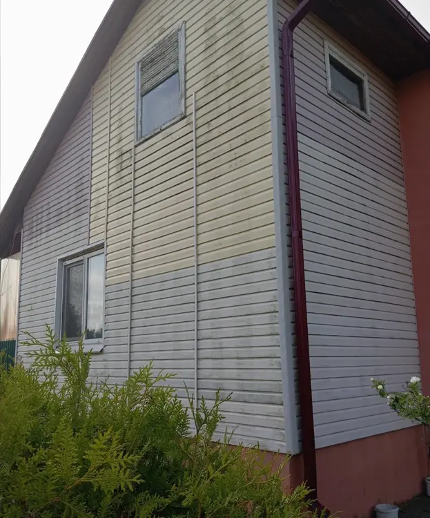 Крыша - шифер. Фундамент - бетон. Дом блочный, с одной стороны обшит сайдингом.