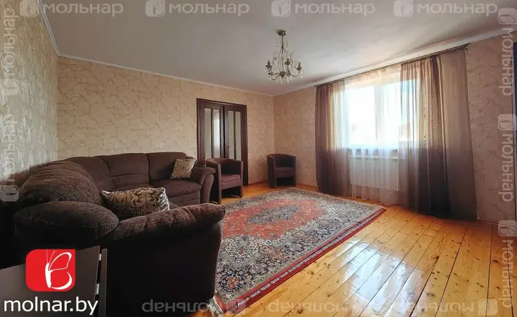 Дом крепкий из бревна обложенный кирпичом. В цокольном этаже расположен большой гараж, помещение для хранения инвентаря, насосная, погреб. Новая крыша металочерепица. В доме 5 жилых комнат из них 3 на первом этаже, большая обустроенная кухня, прихожая, коридор, ванная, туалет. В мансардном этаже две просторные комнаты отделаны деревом.
