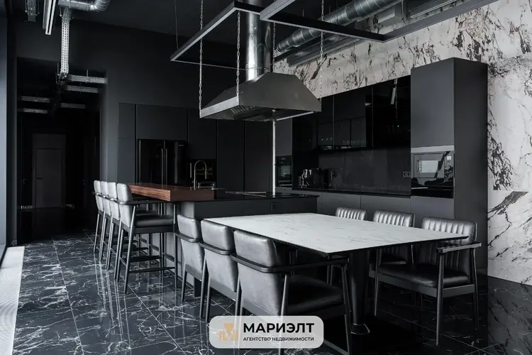 - Столешница из натурального камня, встроенная техника AEG, SMEG, винный холодильник TEMPTECH.