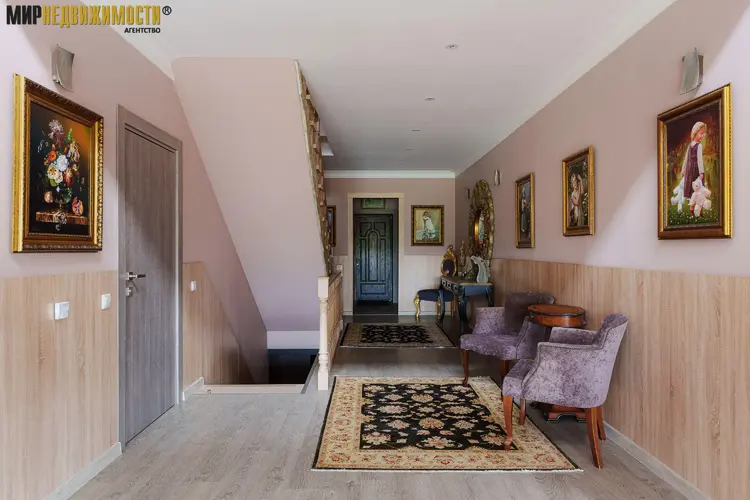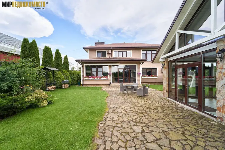 Трёхэтажный дом 2014 г.п. (реконструкция 2017 г.) площадью 355,8 кв.м., общая площадь 332,2 кв.м., жилая 84,6 кв.м. Высота помещений от 2,85 м до 3,20 м. Навес для машин. Гараж. Большая беседка для круглогодичного использования площадью 105 кв.м.