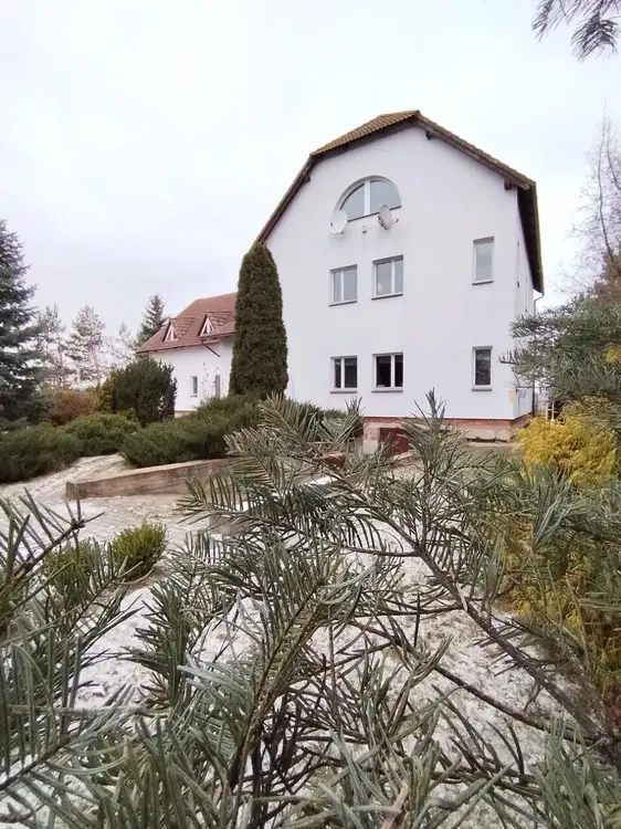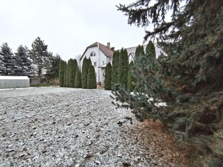 Большой дом на чудесном зеленом участке. Расположен у трассы Брест-Москва недалеко от Фаниполя. Дом состоит из двух частей. На участке ухоженный газон и масса насаждений, большая часть из которых - редкие хвойные и лиственные породы, много цветочных культур. Деревья по всему периметру участка (как внутри, так и снаружи участка), что делает его закрытым от чужих глаз и очень уютным. Также на участке расположена современная баня с большой террасой с камином. Участок огорожен кирпичным забором. Есть подземный гараж.