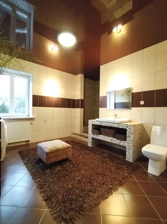 Первое, на что стоит обратить внимание, это просторный и функциональный дизайн и планировка дома. Он разделен на множество отдельных помещений, обеспечивая приватность для каждого члена семьи. Внутреннее убранство выполнено с использованием материалов высокого качества и учитывает современные тенденции в дизайне интерьера. Одну часть дома можно приспособить под любую коммерческую деятельность, будь то гостиничный комплекс, детский лагерь, офисы или производство.