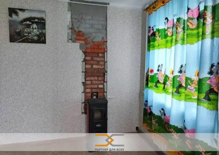 В доме: на первом этаже –две комнаты; есть кухня плита элект, на втором большая комната. Дом внутри по всему периметру утеплён на 10 см, стены обиты гипсокартон и оклеены обоями. Отопление электрический котел, есть печь, деревянные стеклопакеты. Пол на первом этаже плитка, а в комнатах линолеум. Туалет на участке, электричество подключено. Есть собственная скважина, крыша – еврошифер (андулин).