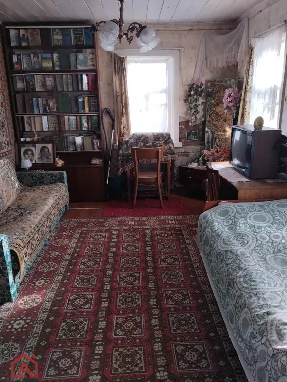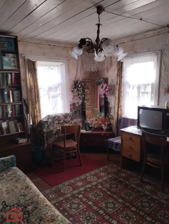 Дом бревенчатый 1947 года постройки. Вентилируемый ленточный фундамент, деревянные окна, крыша шифер.