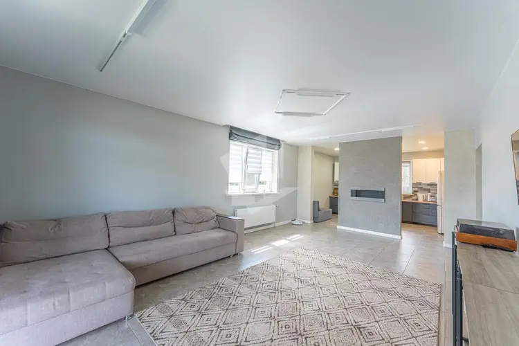 Это не дом, это королевство уюта и комфорта площадью 125 м2. Просторная гостиная 33 м2 со столовой зоной с панорамным выходом на атмосферную террасу — идеальный фон для уютных вечеров и шумных воскресных обедов.