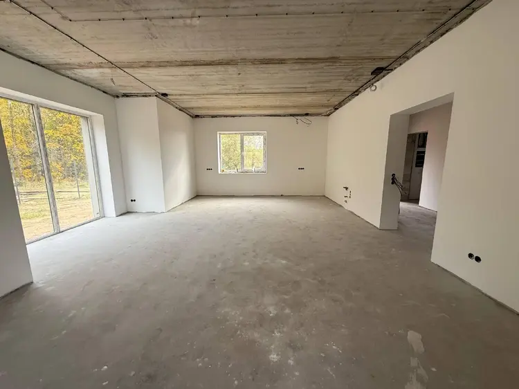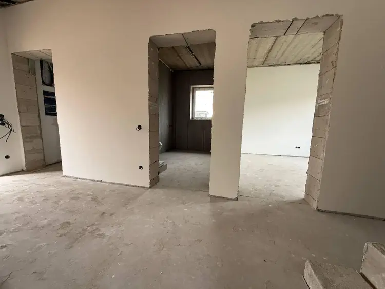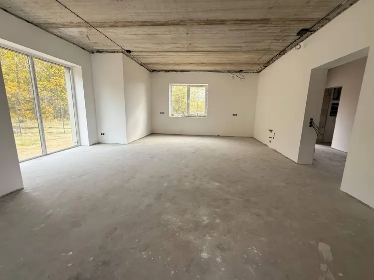 В доме выполнена черновая стяжка с тёплым полом, утепление пеноплексом 10 см и чистовая стяжка.