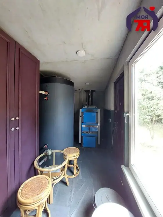 - Все коммуникации проведены в дом: электричество, скважина, местная канализация. Отопление - твердотопливный котел. Санузел совмещенный- плитка, сантехника и мебель производство Польша, итальянские смесители.